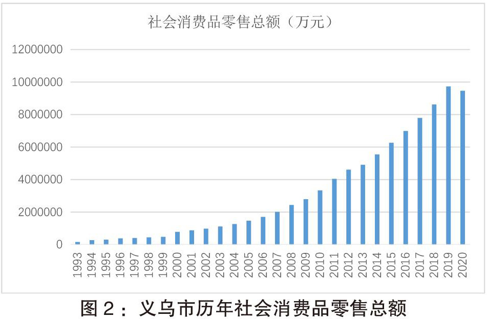 本研究所所采用的义乌市历年社会消费品零售总额数据来自义乌市统计局官方网站发布的《义乌市统计年鉴》(2020),确保研究数据的真实性、可靠性和权威性。由于义乌市统计局官网尚未发布2021年的《义乌市统计年鉴》,2020年义乌市社会消费品零售总额数据来自义乌市统计局发布的《2020年义乌市国民经济和社会发展统计公报》,同样也能确保数据的真实性、可靠性和权威性。