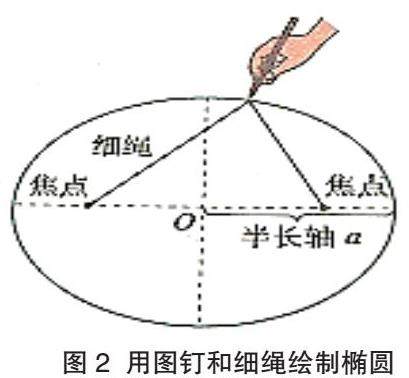 教师活动:总结开普勒第一定律,并组织学生用图钉和细绳绘制椭圆(如图2所示)。