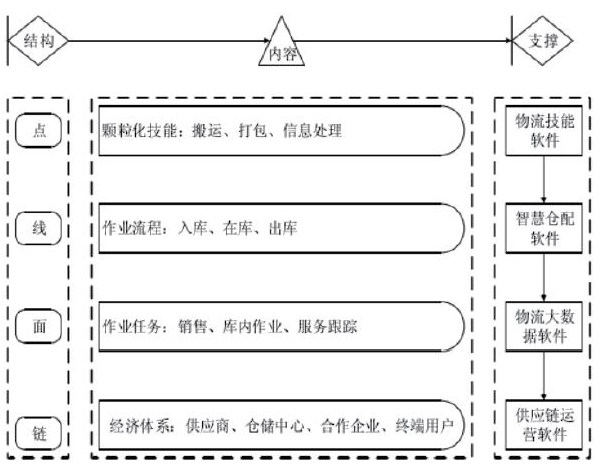 基于“1+X”的智慧供应链实训中心构建,除了完成 1的实践内容,更是强调 X 的技能养成,我们可以通过构建点、线、面、链的全方位供应链体系实现 X 技能的全方位覆盖,如图所示: