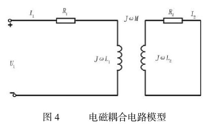 电磁加热感应电源应用于高频率电力开关的工作状态中,其运行环境、运行条件与周边干扰情况等会对电磁加热系统产生一定的影响。电磁加热系统的感应设备终端相当于一个完整的电磁藕合体系,一次侧为接电输出的加热感应绕组电路,二次侧是电力换能器,由此构成为无磁芯的电力空心变压装置,电磁藕合模型,如下图所示。