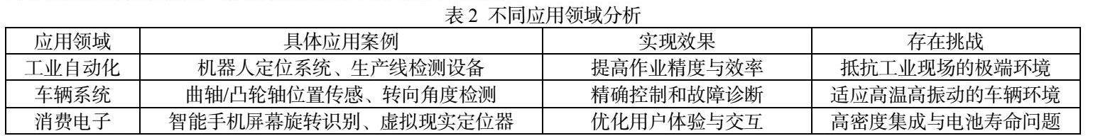 值得一提的是,随着传感器功能的拓展与网络技术的融合,多个霍尔传感器的协同工作成为了可能。系统通过分析来自各传感器的综合数据,实施更加精细的运动控制策略。例如,在自动化仓库中,运用多个传感器的配合实现货物的高速精准分类与搬运。不同应用领域分析见表2。