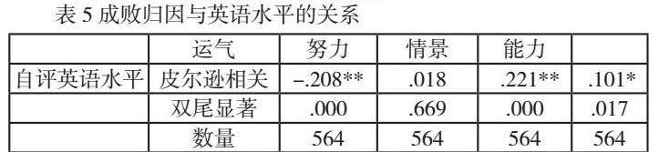 2.成败归因与英语水平的相关关系