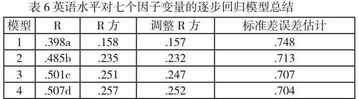 (三)英语水平与七个因子变量的回归关系