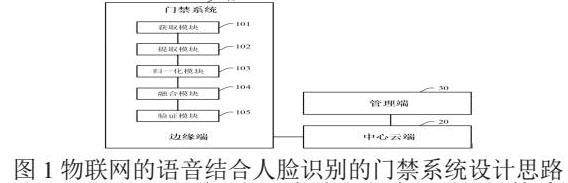 本研究设计的基于物联网的语音结合人脸识别的门禁系统,由边缘端与中心云端进行通信连接,具体如图1所示。