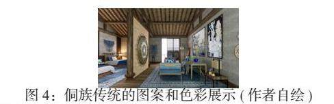 在现代建筑设计中,也可以运用侗族传统的色彩元素,设计出具有现代化特色的建筑,在增加建筑美感的同时,也突出了传统文化的独特魅力。例如,在大楼的门廊、通道或窗户上运用侗族传统的图案和色彩进行装饰,形成独具特色的建筑外观。融合运用侗族文化颜色元素,能够让传统文化色彩更有生命力,让传统文化中鲜明的色彩和音乐元素带给现代人活力、新鲜感,更好地传承和弘扬侗族文化的美好特色,如图4所示。