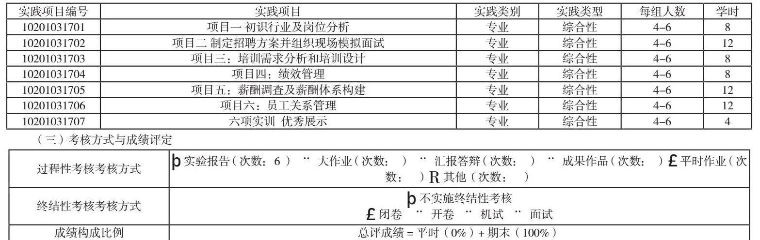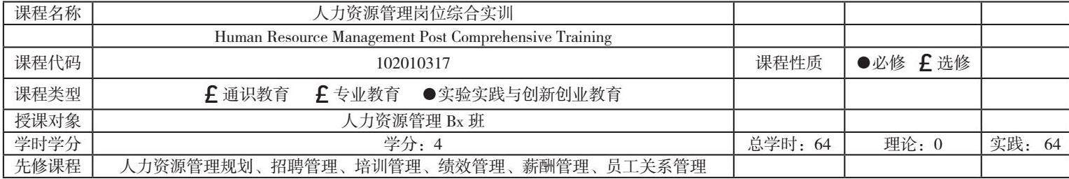 以下展示《人力资源管理岗位综合实训》教学大纲的核心内容。