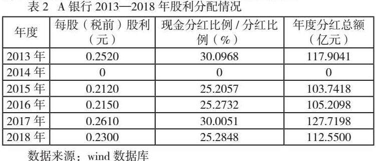 商业银行取消或压缩股利分配比例能够直接增加监管资本。表2列示A银行2010—2018年的股利分配数据,发现2014年A银行未对外发放股利,而是选择将所有利润留存于公司内部,在当年为A银行增加留存收益124.362亿元(假设2014年维持2013年现金分红比例30%),核心一级资本充足率也因此而增加了41.94bp。A银行在年报中表示,综合考虑到资本监管标准、重大资本支出等因素,A银行需要进一步提高资本充足水平,故2014年度未进行现金分红。这说明其在资本监管压力较大情况下通过取消股利分配来缓解压力。