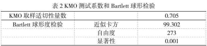 结构效度检验是检验问卷调查有效性的一个基础的方法。本文采用因子分析方法对调查问卷进行结构效度检验,通过KMO系数和Bartlett球形检验统计量来判断。当KMO高于0.5时,认为具有较高的结构效度;反之,则认为结构效度较低,不适合做因子分析。本文通过SPSS分析的结果为0.705(大于0.5),适合做因子分析。故而,本文的问卷调查具有较高的结构效度。