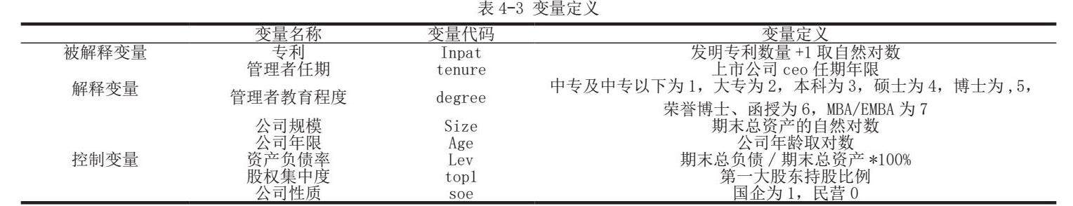 为验证管理者教育程度对专利数量之间存在的关系,构建模型(2):