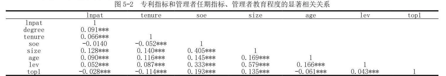 图5-2 专利指标和管理者任期指标、管理者教育程度的显著相关关系