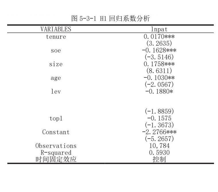 H1:管理层任期较短会减少企业专利数量 正向影响 原假设成立