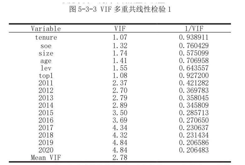 VIF<5,不存在严重共线性问题。全部年限VIF都小于5,总体VIF值和平均VIF值也都在5之下。