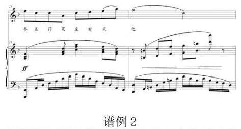 优秀的演唱技巧能够为歌曲的艺术感染力锦上添花,通过恰当的呼吸控制、音准、节奏、音色变化和舞台表现,能够让演唱者更好地抓住听众的注意力。在展开段两个同头的乐句中,君子的爱意上升到了顶峰,并且到达本曲最高音,正如以下谱例。