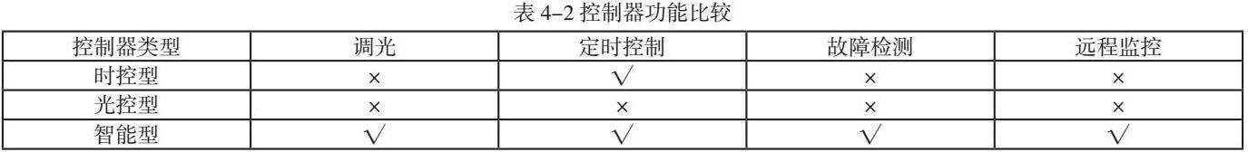 功能评估:不同控制器的功能如表2所示。从表中可以看出,智能型控制器具有最多的功能,而时控型控制器具有最少的功能。这些功能对路灯系统的整体能效和性能有不同程度的影响。例如,调光功能可以根据不同的需求和条件来调节路灯的亮度,从而节省电能和延长寿命;定时控制功能可以根据预设的时间表来控制路灯的开关,从而避免无效照明和浪费电能;故障检测功能可以及时发现和报告路灯的异常情况,从而提高系统的可靠性和安全性;远程监控功能可以通过网络或无线信号来实时监测和管理路灯的状态和参数,从而提高系统的效率和便利性。