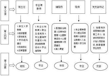 存在的问题:首先,专业课教师日常教学工作多、科研任务压力大,还要承担一些额外的社会工作,忽略了对学生的思想政治教育。其次,思想方面认为专业课教师就上好课,学生教育管理是班主任和辅导员的事。辅导员往往来自不同的专业背景,难以对学生的学业进行指导,对于指导学生创新创业方面有很大的局限性。最后,专业课教师往往不用坐班,上完课以后学生不知道去哪里和老师沟通交流,学生形成了有事就找辅导员的惯有思维。专业课教师对于学生在课堂上的表现和成绩也不会主动和辅导员沟通交流,缺乏协同育人的观念。