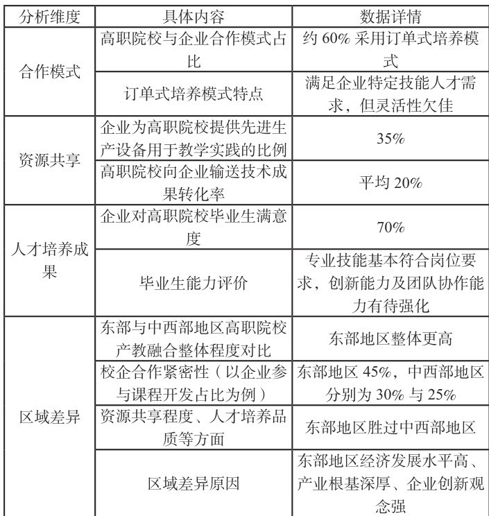 为全方位、精确地掌握高职产教融合的真实情况,此次调研运用了多样化的研究方式。在挑选调研对象时涉及东、中、西部各个不同地区的 30 所高职院校以及和它们合作的 50 家企业,目的是保证样本具备广泛的代表性能够体现不同区域经济发展程度下产教融合的区别。调研工具主要有面向高职院校的问卷以及面向企业的问卷,问卷内容围绕产教融合的诸多关键层面悉心设计比如合作方式、资源共享状况、人才培养成果等。