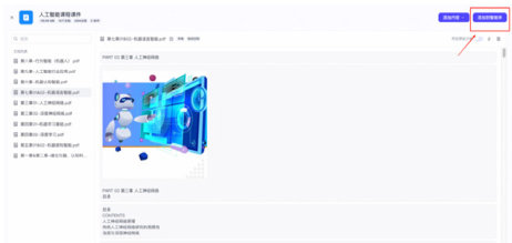 为了使智能助教能够基于《人工智能基础与应用》的课程内容大纲回答学生问题,收集了本课程的教学课件作为构建专属知识库的内容,总共包括10 个PDF 文件。