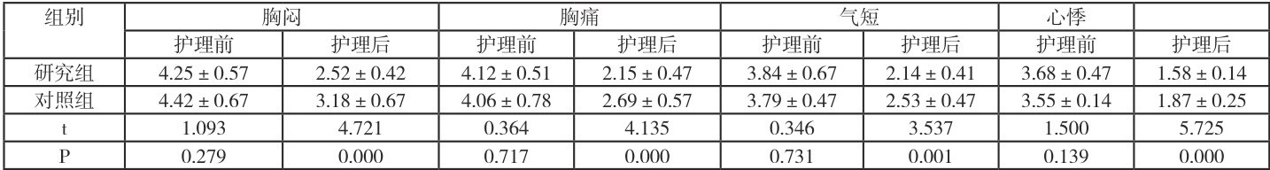 研究组在常规护理基础上加用基于气街理论的中医穴位贴敷联合八段锦锻炼。(1)中医穴位贴敷干预,依据中医气街理论,选择膻中、天池、心俞等穴位。选用具有活血化瘀、行气止痛作用的中药,如丹参、川芎、降香,研磨成细末,制备为膏剂。将药膏涂敷于选定穴位,使用医用透气胶布固定,每次贴敷时间 4 ~ 6 分钟,每周贴敷 3 次,连续干预 12 周。(2)八段锦锻炼干预,由经过培训的康复护士专门指导患者学习八段锦,讲解每一节动作的要点,纠正错误姿势,每日锻炼 1 次,每次约 30 分钟。锻炼强度以患者自觉微微出汗、心率适度加快为宜。每日坚持锻炼,连续进行12 周。