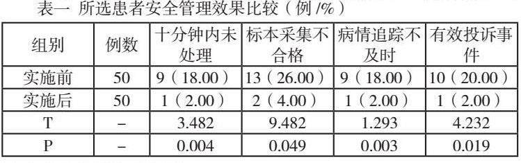 研究显示,实施后的安全管理效果优于实施前,且P<0.05,见表一。
