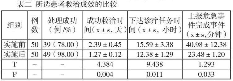 本次研究对所选患者实施前后的安全管理效果及救治成效进行汇总比较。