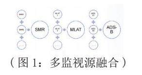 监视数据处理接收预处理模块发送过来的预处理过后的监视数据,通过同类型监视数据处理模块,生成合成雷达航迹、合成ADS-B航迹,合成场面监视雷达(SMR)航迹、合成多点定位(MLAT)航迹,再送往融合模块生成综合的系统航迹。