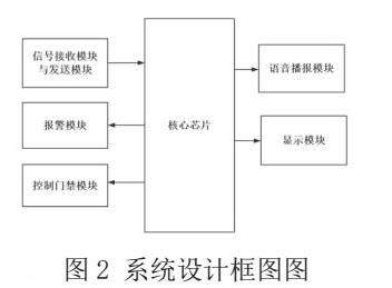 项目基于UWB的门禁系统设计框图如图2所示,该门禁系统主要由核心芯片、信号接收与发送模块、语音播报模块、门禁控制模块、门禁显示模块等各个模块共同协作,共同实现门禁系统的智能化管理。