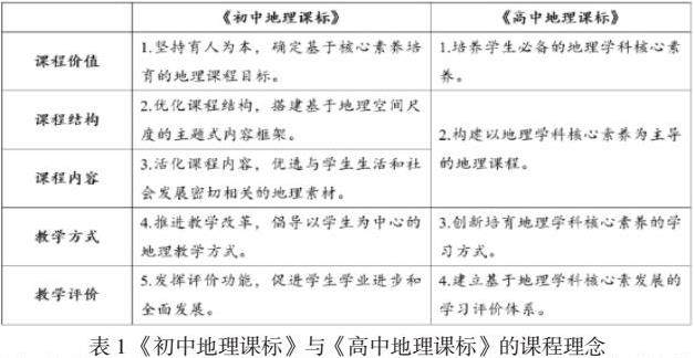 由上表可以知悉,初高中地理课标理念存在一定的连贯性,尽管初高中地理课标理念的数目不同,但是皆是围绕着课程价值、课程结构、课程内容、教学方式、教学评价五个维度展开。
