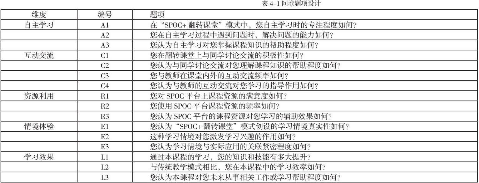本研究采用问卷调查方式,问卷设计基于建构主义学习理论和情境学习理论。建构主义学习理论强调学习者的主动性、知识的建构过程以及学习中的互动交流;情境学习理论注重学习情境对学习的影响和知识在情境中的应用。从自主学习、互动交流、资源利用、情境体验和学习效果五个维度出发,设计了详细的指标体系。每个维度下包含若干题项,旨在全面评估教学模式在课程中的应用效果。