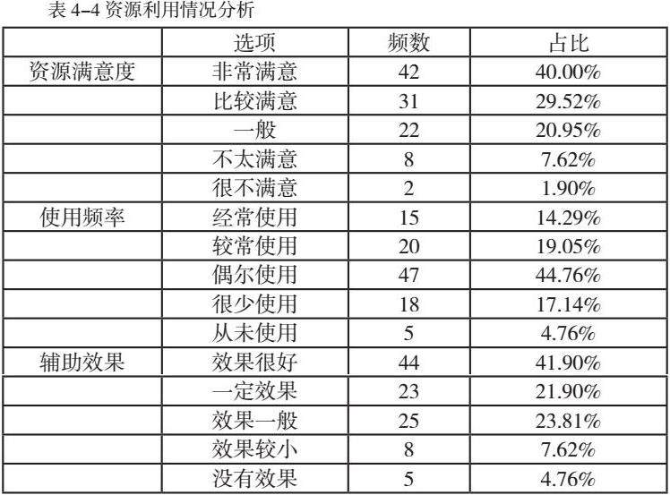 使用频率方面,七成的学生倾向使用平台课程资源上,“经常使用”和“较常使用”的共占35%。说明虽然多数学生能够使用平台课程资源进行学习,但使用频率还有待提高。教师可以通过设置学习任务、鼓励学生利用课程资源等方式来提高其使用频率。