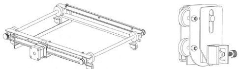 X 方向移动采用同步带实现同步传动,如图 1 所示。电机 1 的输出轴采用同步带与 X 向滑轮连接,X 向滑轮与 X 向滑轨连接,X 向滑轮在电机1 的作用下使其在X 向导轨上移动。