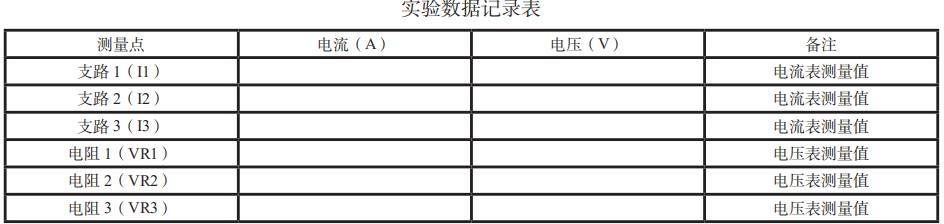 3.使用电压表测量各电阻两端的电压 VR1、VR2、VR3,并记录数据。