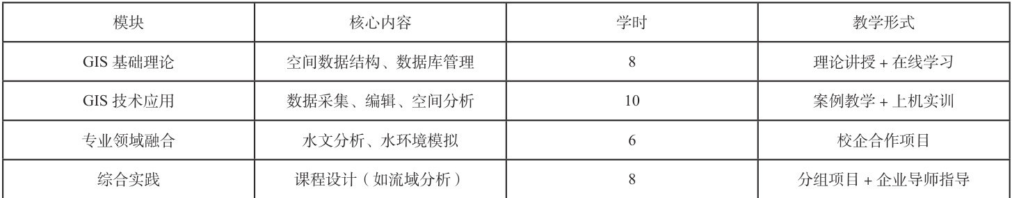 (1)随着智慧城市、数字孪生、水资源信息化管理等技术的发展,GIS 在水文与水资源工程中的应用场景不断拓展,如流域分析、洪水模拟等。传统 GIS 课程偏重理论,缺乏与行业需求的衔接,导致学生实践能力不足,难以满足企业岗位要求。