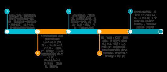 监测方法构建要围绕遥感数据特性与耕地变化特征,形成覆盖数据选择、模型设计、精度优化的完整技术体系,精准捕捉项目区耕地动态变化。数据源选择按项目需求分层筛选:县域级大面积整治项目,优先用 Landsat-8(30 米分辨率)、Sentinel-2(10 米分辨率)影像,这类影像覆盖广(单景超 10 万平方公里)、成本低,适配周期性全域监测;乡镇级小范围高精度项目,选用GF-2(2 米分辨率)、WorldView-3(0.3 米分辨率)影像,能清晰呈现地块边界、田埂细节,避免细碎耕地漏判。还需把控影像时相连续性,除整治前基准期、整治后验收期外,关键阶段补充影像,形成“基准-过程 - 结果”时间序列,不遗漏耕地变化关键节点。耕地信息提取要构建“光谱+ 空间”双维度模型:通过归一化植被指数(NDVI)强化光谱特征,利用生长季耕地NDVI 值(0.3-0.8)与裸地(<0.2)、水体( <0 )的差异,初步圈定潜在耕地;引入面向对象分类技术,按分辨率分割地块单元,结合耕地空间属性(规则矩形、连续分布)与纹理特征(均匀植被纹理)优化规则,减少园地、林地干扰。同时集成差值法与主成分分析法建变化检测模块:两期影像 NDVI 差值> 0.2 判定为新增耕地、< -0.2 为减少耕地;主成分分析法压缩冗余信息、突出变化区域光谱差异,双重验证提升定位精度,降低云层阴影、季节性植被波动的影响。详情见图1