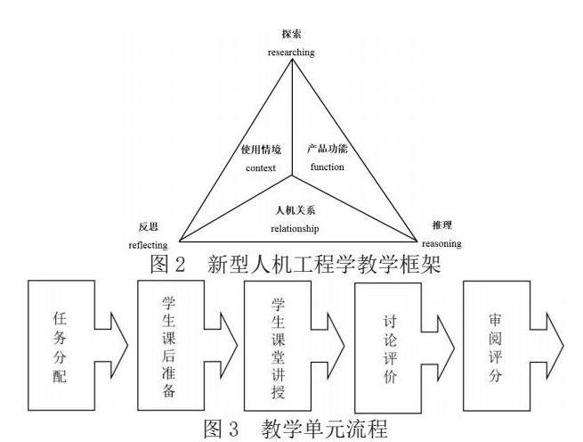 插入三分之一的教师理论讲授,以人体尺度、手握工具、座椅设计、显示与控制设计等典型人机工程学的主题设计数个任务驱动的教学单元,每个单元大致包括以下几个步骤(图3)。在这个过程中,将以学生为学习的中心,教师则担任教练的角色,引导学生从人机工程学的角度观察分析产品中的设计机会,并要求在每个单元结束时进行自我评价和小组评价,提高学生的沟通和协作能力。