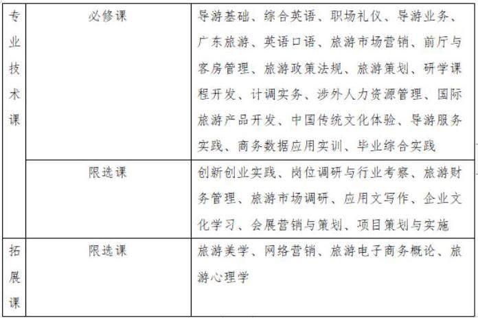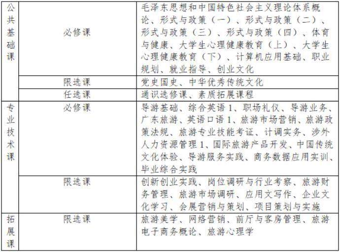 其次,横向复合 X 证书与课程内容。横向复合改革的重点是融合学校课程的“学科体系”与培训机构的“考核体系”,整合形成促进人才质量提高的课程内容体系。如在基础技能阶段,主要是注重学生的基本职业能力的培养,通过开设公共基础必修课、公共基础选修课和专业基础课程,针对基础证书考核的内容,以嵌入式的方法将英语AB级证书、计算机证书纳入课程内容中,分别对应的大学综合英语和计算机应用基础。在专业技能阶段,将导游资格证书考核内容融入到《全国导游基础知识》、《广东导游基础知识》、《导游实务》、《政策法规》和模拟导游实训课程中,按照考证考核标准开展教学活动;在专业拓展阶段,1+X研学旅游策划与管理考证、旅游计调师、旅游咨询师等证与原有课程内容不完全吻合,需要开设选修课程让学生弥补确实内容。