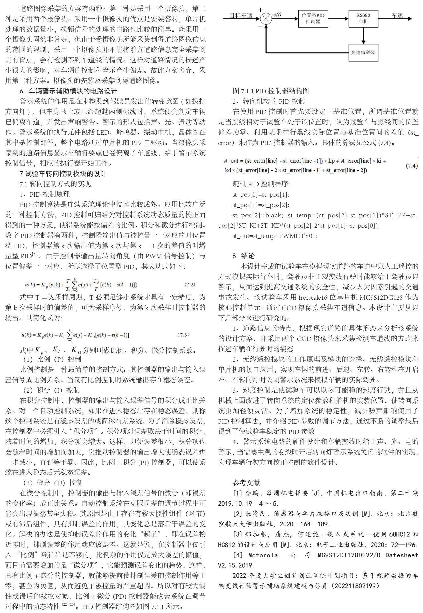 1、道路信息的特点,根据现实道路的具体形态来分析该系统的设计方案,即采用两个CCD摄像头来采集检测车道线的方式来描述车辆在行驶时的姿态