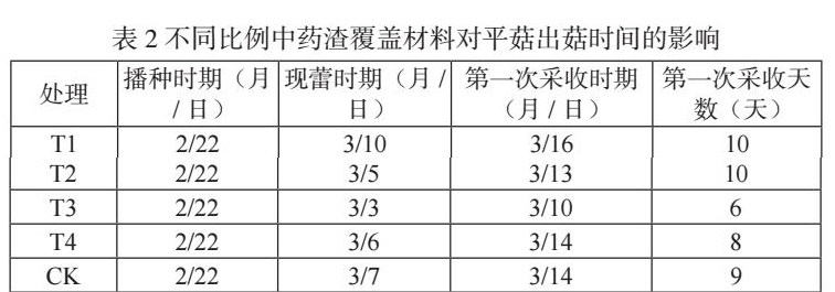 不同配比中药渣覆盖对平菇生长和品质的影响