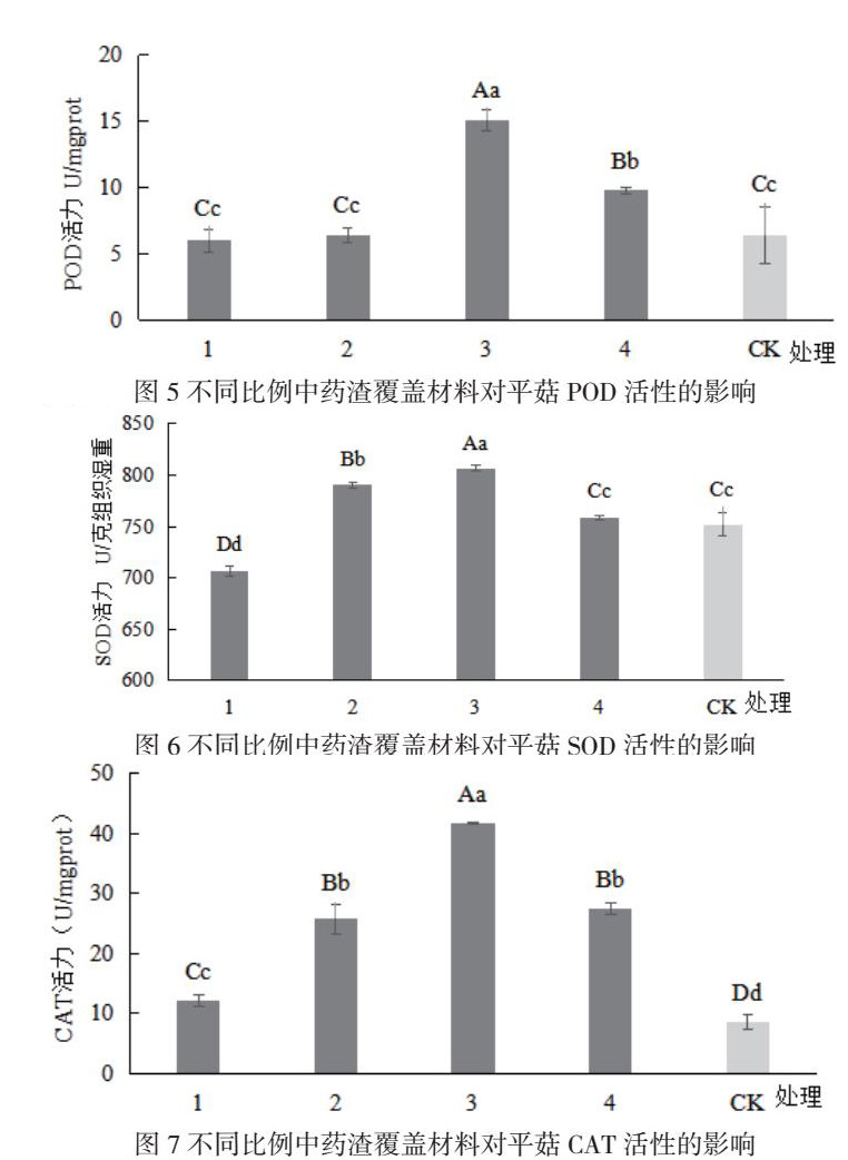 2.3不同比例中药渣覆盖材料对平菇保护酶活性的影响