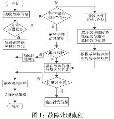 在实施故障定位后,紧接着就要实现故障处理,在故障处理阶段,起重要关口作用的就是特征量的提取。发生单相接地时,会衍生出较大的隐患,需根据国家电网试行准则要求,完成故障定位和预处理。在此期间,录波型故障指示器至关重要,可上送故障录波,将其按设计线路要求发送至配电主站。配电主站接收到信息后,自然会依赖配电主站现有功能,对故障录波解析,同时完成故障特征量提取操作。在实操阶段,根据配电自动化图模,实施重要的拓扑故障定位,从而解除故障和消除风险。真实有效故障处理程度如图1所示。在实践环节中,为适应各种复杂场景,满足现实应用需求,需要配电主站(重要装置)在接收到故障信息时,通过自动化程序,自动检测故障信息,提高故障信息利用率。同时分辨正确的故障类型,在此前提下启动不同故障流程,从而对故障进行诊断[2]。