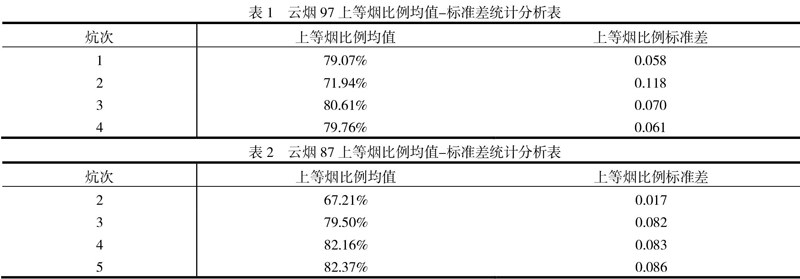 在确定鲜烟质量的情况,选择适宜的烘烤工艺,把握关键温度段对烤烟质量的影响,可在一定程度上提高烤后烟的上等烟比例。