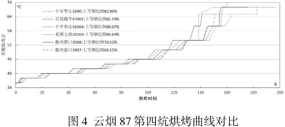 恰当烘烤工艺能将优质的鲜烟叶烘烤出最佳的质量。通过笔者数据分析表明,不同品种、不同炕次最佳烘烤工艺存在差异。本文从数据出发,分析了云烟87和云烟97第四炕次烟叶的烘烤工艺,提出了关键温度段及烘烤时长的建议,但关键温度段时间跨度仍然较大,进一步精确需更多数据支撑。