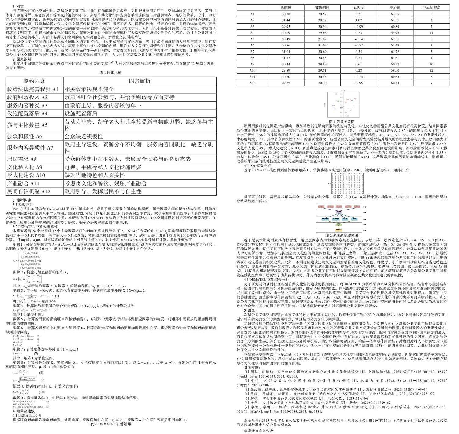 基于DEMATEL-ISM的乡村社区新型公共文化空间建设制约因素研究