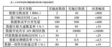 大数据背景下,数据集成与共享成为提升信息化水平的关键环节,事业单位需要建立统一的数据交换标准和接口规范,实现不同业务系统之间的数据互联互通,通过数据集成平台,将各部门产生的文书档案数据进行集中管理和统一处理,打破信息孤岛现象,并推动数据开放共享机制建设,促进档案数据在更广泛范围内的利用和共享。例如,H市某事业单位通过建立统一的数据交换标准和接口规范,有效提升了文书档案开发利用效率,具体如表1所示。