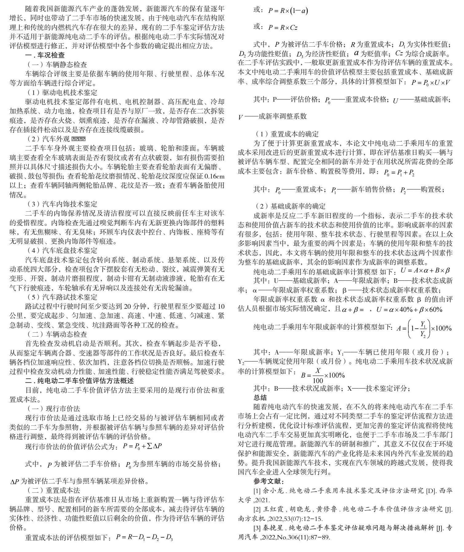 [2]王红霞,胡晓龙,黄修鲁.纯电动二手车价值评估方法研究[J].南方农机,2022,53(07):12-15.
