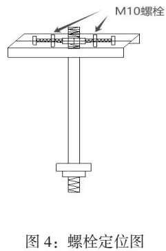 螺栓定位孔开设完毕后,将支撑体系各部件运施工现场进行组装,组装完成支撑体系水平度偏差≤2mm/m,汽轮机与轴承座地脚螺栓根据预先开设的定位孔进行安装,利用地脚螺栓自带螺帽进行标高调整,纵横偏差采用M10的整套螺栓十字设置顶丝调整;锚固板需在支撑体系上加装衍生牛腿作支撑,利用手拉葫芦进行吊挂,采用花篮螺栓进行标高与纵横偏差调整;预埋套管安装时需在灌浆模版体系中设至套管底部定位块,上部插入预先开设的支撑体系定位孔中并采用M10的整套螺栓十字设置顶丝调整纵横偏差(见图4)。以上工作完成后在地脚螺栓与套管总长2/5与4/5处设置加强固定腰筋进行加固,且腰筋与支撑体系相连接。