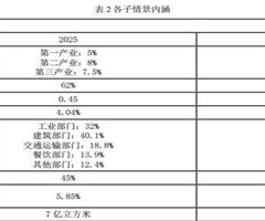在低碳情形下,2020年排放量为291.45百万吨标准碳,2030年则为312.24百万吨标准碳,2060年为262.58百万吨标准碳。碳排放大致在2033前后达到峰值,没有实现碳中和。具体表现为,虽然随着经济的增长和人口的增加,但因为清洁能源发电占比的提高、碳捕获与碳封存技术的引入和提高,火力发电占比逐步下降,碳排放量逐步降低;在工业领域,主要是电气化的加速、碳捕获与碳封存技术的引入和提高,使得碳排放逐步降低;在交通部门,电气化的潜力巨大,从2025的18.8%到2050的49.4%,使得交通部门的碳减排明显;在建筑业部门,从2019年的32.9%到2060年的55.6%,使得建筑业对碳减排的贡献也比较明显,同理,餐饮与批发零售行业也对对碳减排具有重要的贡献。但因为低碳过程中未考率加强森林碳汇的作用,故在2033年前后实现碳达峰,在2060年未实现碳中和。