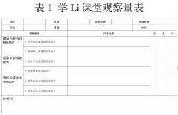 本次课堂观察聚焦“学LI案导学是否提升学生探究力”这一问题,将探究力分解三个维度,根据三个维度设计观察量表:(1)提出和解决问题的能力;(2)迁移和创新的能力;(3)选择和评估方法的能力。(见表1)