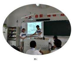 Ⅰ 在新课教学、预约探究实验、练习讲评课,让学生操作实验、分析讲评习题,许多学生都能主动上台,能较有条理的模仿老师进行表达,且有时思维巧妙让老师佩服其很有创新性。特别是让学生合作来进行整节课的教学设计、上课,学生的热情度更高,往往都能精心准备课件、实验器材等,课堂中俨然一个“小老师”(图1)。