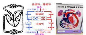 在前面学习基础上,心脏有四个腔,相应血管也有不同,则可分两个方向:一部分与肺形成循环即肺循环;另一部分与全身各个组织器官连接形成循环即体循环,从而实现血液循环的血管循环连接并逐步将氧气、营养物质的交换致使血液成分的变化也融合与其中。