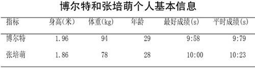 博尔特和张培萌100米基本信息